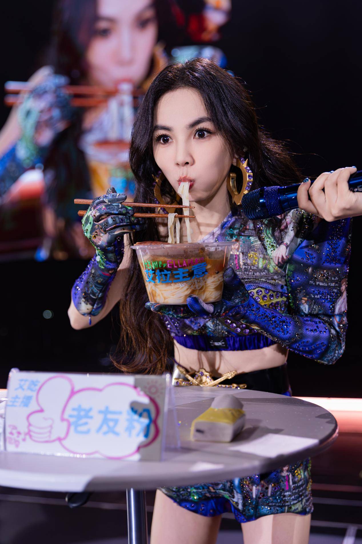 没开唱之前,Ella发布南宁站彩排花絮视频中,就开始做南宁美食攻略,成龙大哥还特意暖心留言:“作为半个南宁人,大哥告诉你老友粉是必吃的!”这份线上安利直接被Ella搬到了舞台之上,她现场上演“点外卖”名场面,老友粉与螺蛳粉相继两天随升降台惊喜升上舞台,开启了「艾拉主意」专属吃播直播,她毫无偶像包袱地大口嗦粉,吃到第一口就被美味震撼到,直呼:“吃到老友粉就有种回家的感觉”。演出结束后,Ella还特意回复成龙大哥:“报告大哥:我刚刚在台上嗦粉了!”。这一趣味满满的环节,不但“馋哭”全场歌迷,相关话题更是火速登上热搜,成为本场演唱会的现象级名场面。
