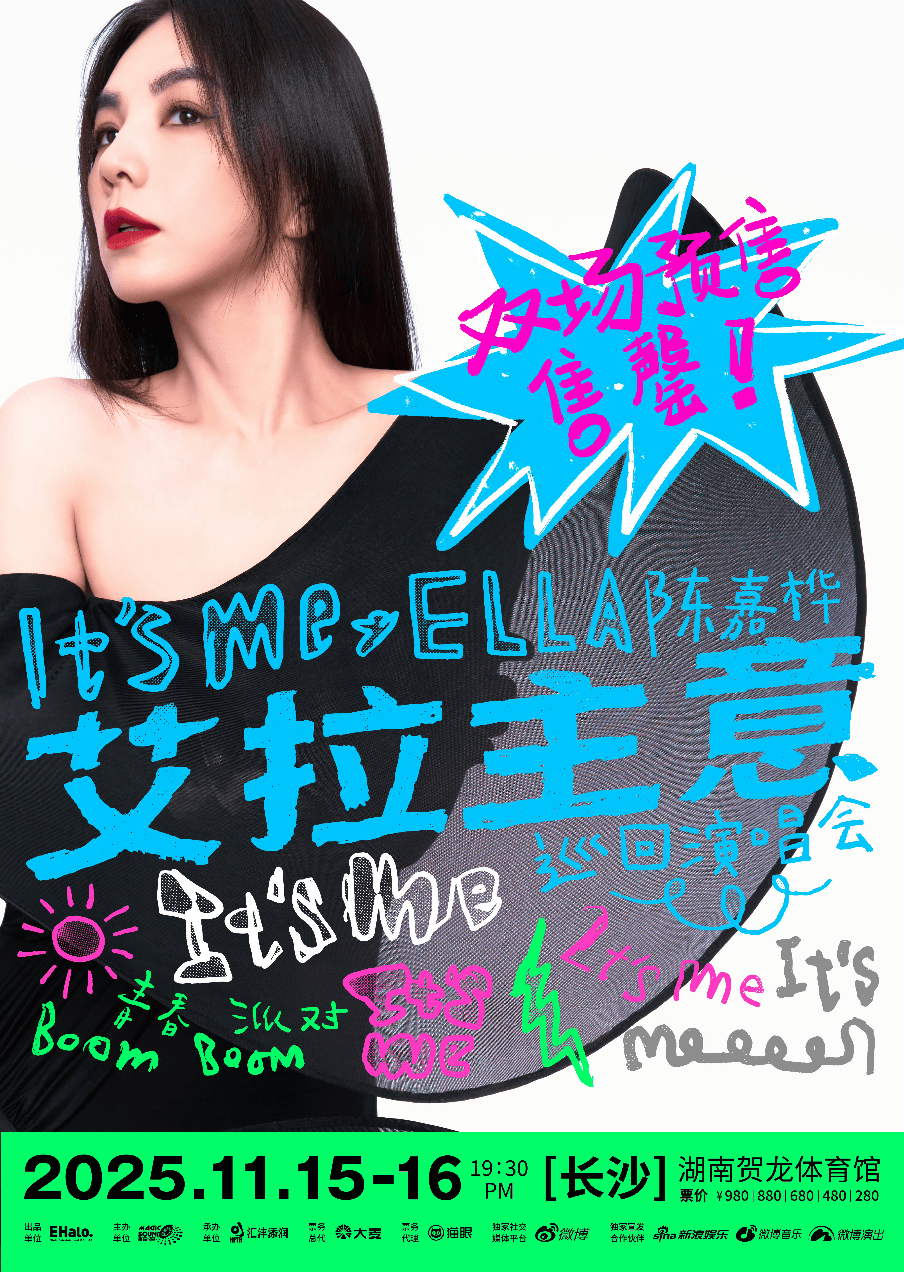 自「It's Me 艾拉主意」首次个人巡演官宣以来,Ella陈嘉桦不仅收获S.H.E合体打call祝福,更吸引汇聚天王天后天团在内的半个娱乐圈超五十位好友纷纷“出主意”,首站长沙开票即秒、加场再秒罄,巡演热度持续飙升。