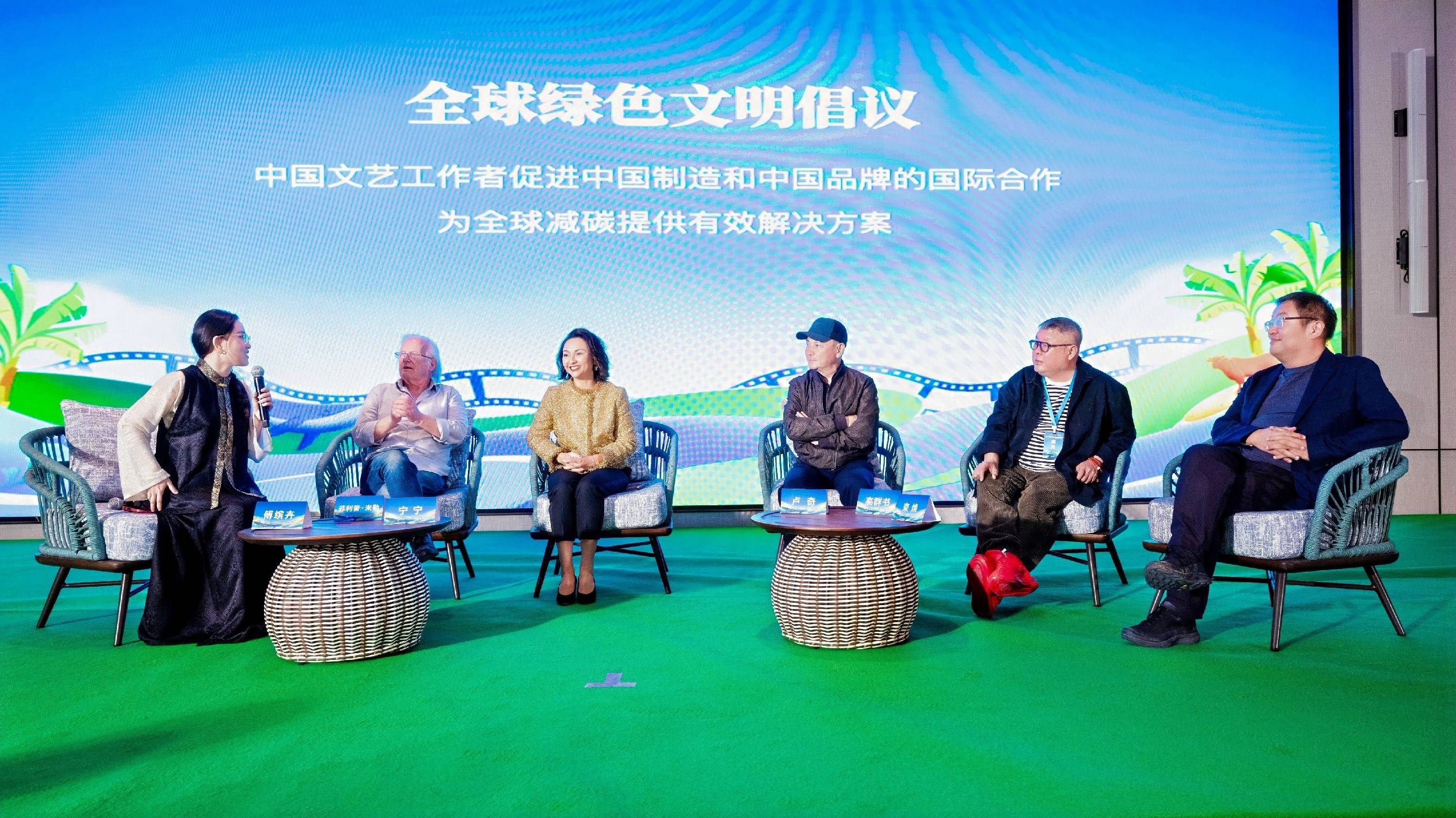 此外,影视周还设置了多项特色活动,将理念倡导与实践行动有机结合。绿色发展分享会作为核心环节,由“绿地毯计划”联合发起人、中国传统文化促进会福文化工作委员会会长李一见,联合发起人兼秘书长、著名制片人傅缤卉分别主持两场圆桌对谈,聚焦“绿色技术创新与拍摄降碳实践”和“绿色行业交互发展”等关键议题,陈瓦丽、菲利普·弥勒、符建、高群书、卢奇、宁宁、束焕、许文广、尤小刚等业内人士凭借专业见解,为影视行业绿色转型提出了切实可行的解决方案;傅缤卉还分享了此前在第三十届联合国气候变化大会发表演说的经历,呼吁更多绿色技术提供商将影视行业作为应用场景,积极推介中国制造和中国品牌,助力中国绿色技术走向全球。