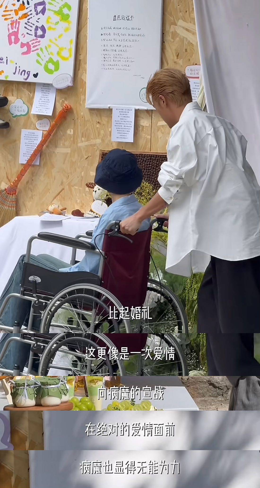婚礼当天,大福穿着洁白的婚纱,插着鼻饲管。尽管病痛缠身,她却依然笑得幸福。婚礼最后,吴克群还塞给大福一个红包,想用最传统的方式替他们冲一冲喜气,带来好运。新娘大福更是哽咽着感谢这么久以来吴克群对她的帮助。更让人破防的是吴克群视频中的那句话:“希望这场婚礼能成为她的止痛剂。”没有华丽的辞藻,却字字戳心——原来爱真的可以具象化,化作一场婚礼、一首歌、一个拥抱,成为对抗绝望的武器。