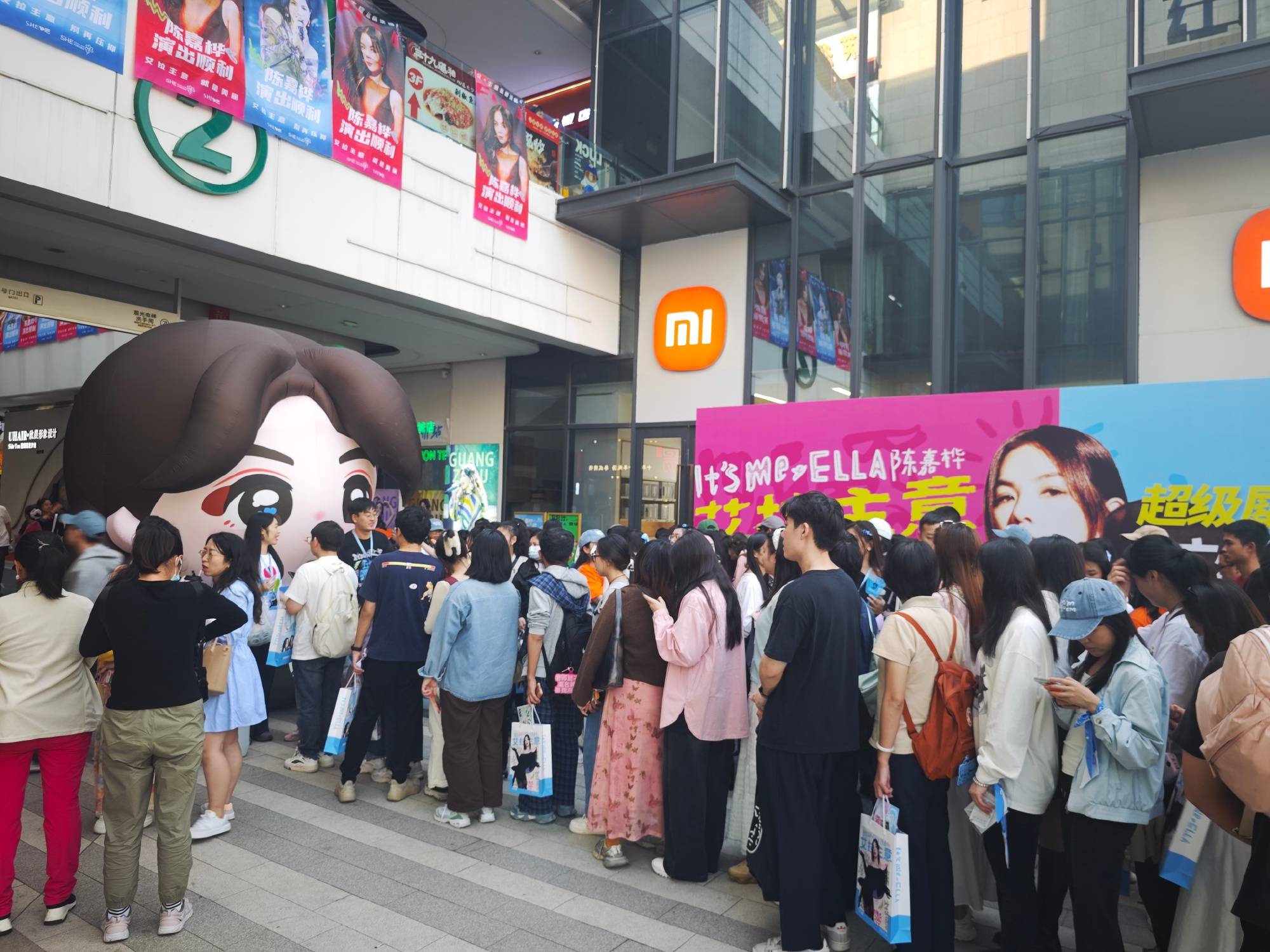 从演出前夕开始,广州的多个地标与交通动线上便陆续出现了由歌迷组织的主题巴士巡游以及周边商场的“痛楼”,整座城市逐渐沉浸在“艾拉主意”主题嘉年华的热烈氛围中;场馆内设置的官方主题市集与互动体验区也吸引大量入场歌迷早早到场参与,主题周边因亲民的价格备受歌迷追捧抢购,打卡合影、将写满心声的明信片投入“小太阳信箱”,都成为必要动作,这场由音乐发起、由爱意串联的全城嘉年华,成为以青春之名相聚「艾拉主意」的满满仪式感。