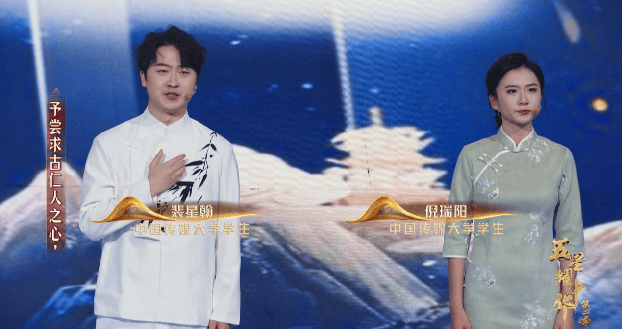 本期节目最亮眼的环节,当属中国传媒大学学生们带来的《岳阳楼记》颂咏秀演。舞台之上,光影交织营造出穿越千年的意境,学生们身着典雅服饰,以饱含深情的朗诵,将《岳阳楼记》的豪迈与深情演绎得淋漓尽致。从“衔远山,吞长江”的壮阔景致,到“先天下之忧而忧,后天下之乐而乐”的精神内核,每一句朗诵都掷地有声,不仅展现出千古名篇的文字之美,更让观众深切感受到范仲淹的家国情怀与文人风骨。这场秀演并非简单的诗文背诵,而是一次古今对话,让传统文化在现代舞台上焕发新生,也让节目在竞技之外多了一份文化雅韵。