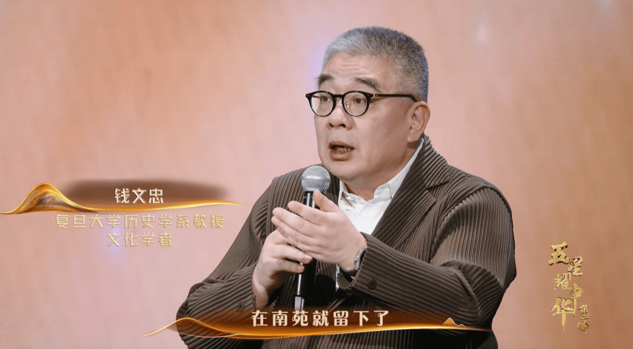 复旦大学历史系教授钱文忠则带来别样的文化解读:通过连珠纹这一传统纹样,追溯古人的太阳崇拜情结——连珠纹以圆形为基本元素,象征太阳与阳光辐射,是史前太阳崇拜文化的延续,让观众读懂传统纹样中的文化隐喻;他还以趣味视角解读史实,点出古代诗人“主业为官、副业写诗”的真相,结合诗人生平讲解作品背景,让枯燥的历史变得生动鲜活;最后更是聚焦范仲淹,带领观众重温先贤风骨,致敬“先天下之忧而忧,后天下之乐而乐”的家国情怀。