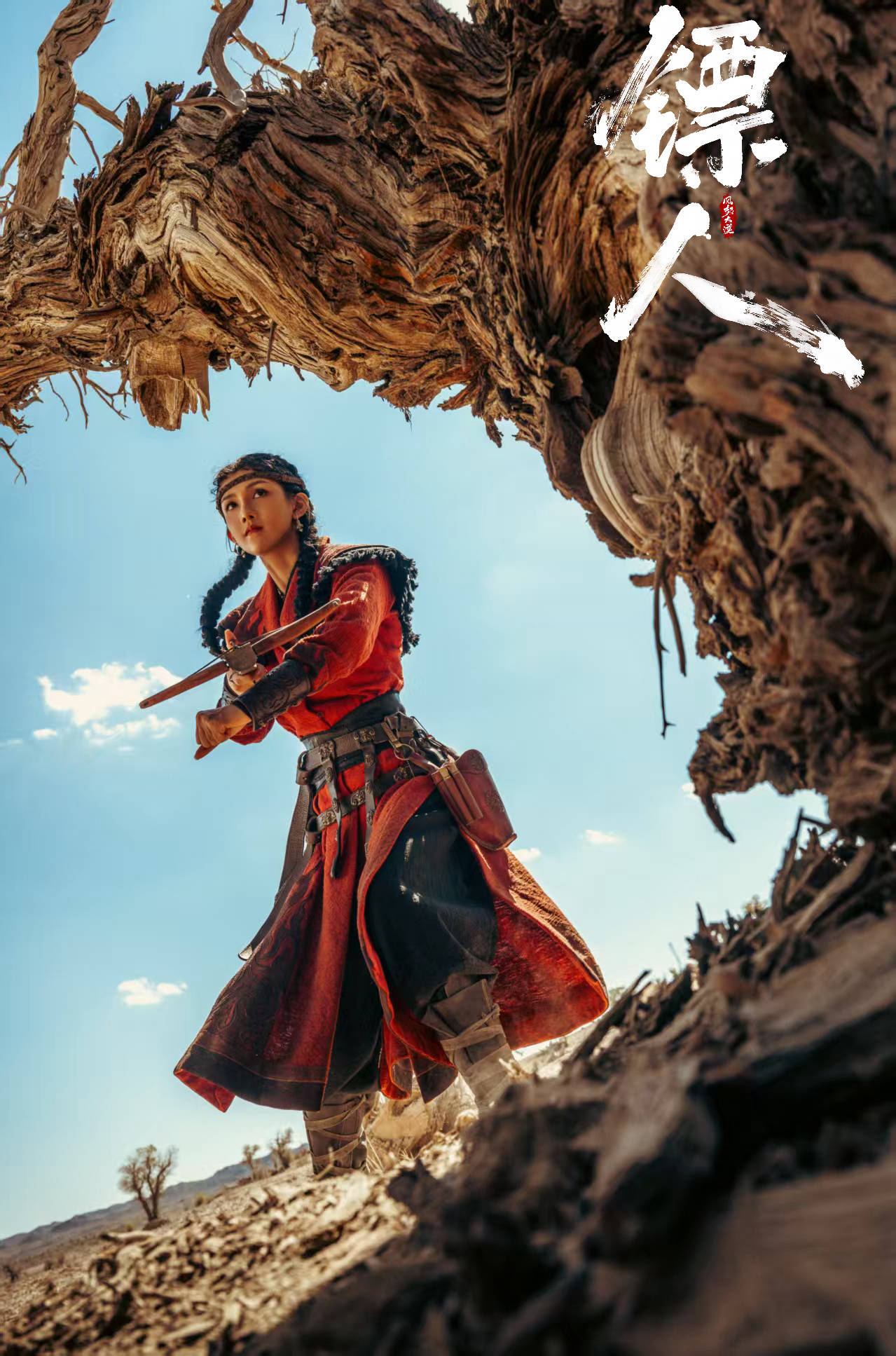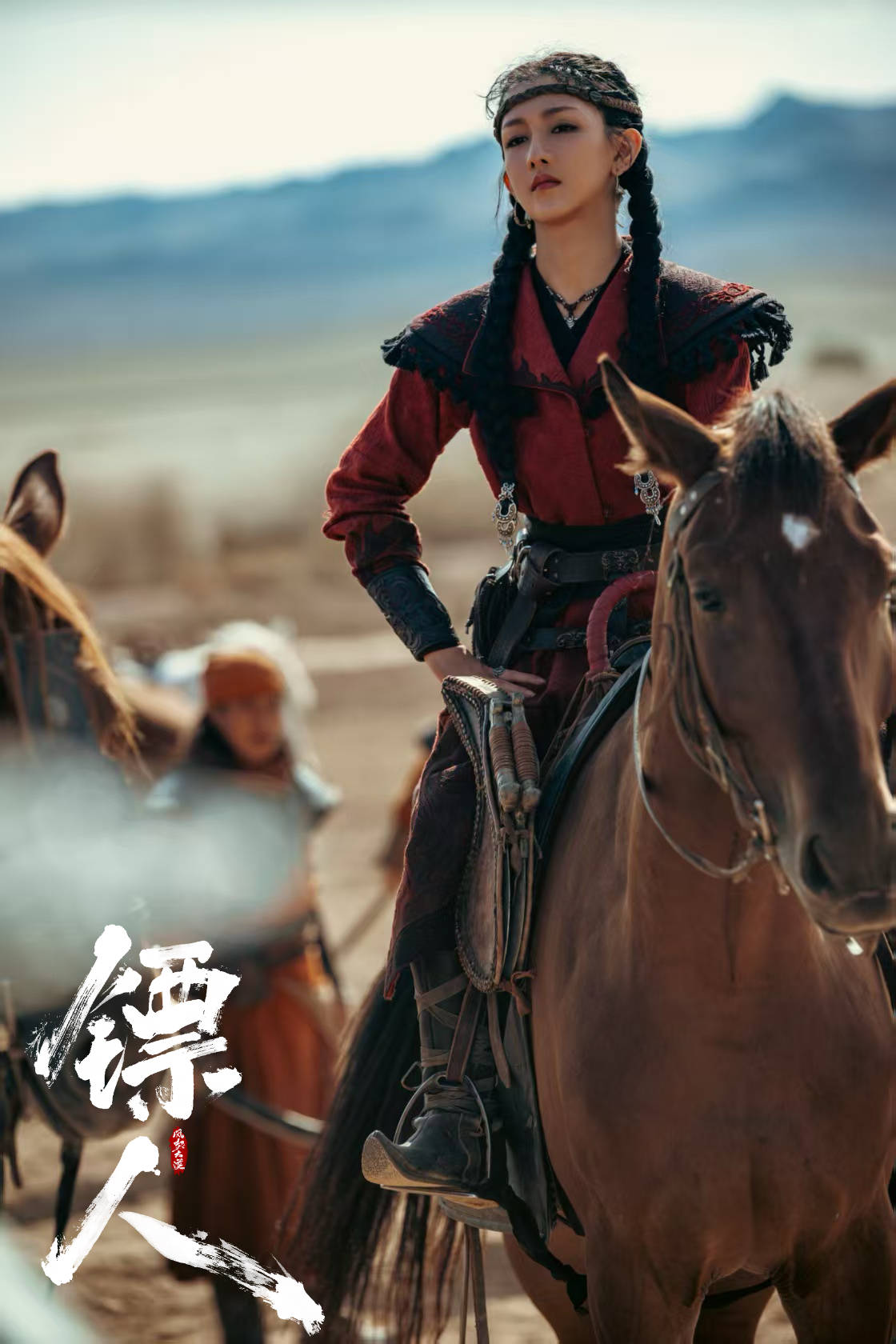 在最新曝光的视频与海报中,00后实力小花景瓷饰演的五大家族少主之一佩乌蜜儿,凭借数个惊鸿一瞥的镜头,牢牢抓住了观众的目光。她或是一身炽烈红衣,于旷野中策马疾驰,衣袂翻飞如燃烧的火焰,尽显超越年龄的英武之气;或是隐于暗处,手中劲弩满弦,眼神锐利如鹰隼,于静谧中凝聚着爆裂的战斗张力。这些极具故事感的画面,瞬间点燃了观众对这位神秘少主的无限想象:她并非冲锋在前的单纯武者,而是执棋布策、以智慧与魄力周旋于乱局中心的關鍵人物。景瓷以极具说服力的造型和神态,精准诠释了角色亦柔亦刚、谋定后动的复杂魅力。