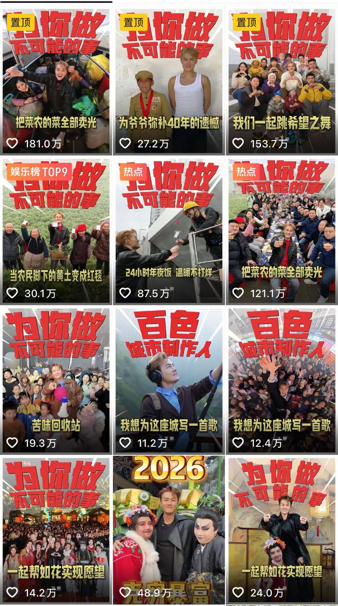 仔细梳理这场流量盛会,我发现,这本质上不是一次临时的明星公益摆拍,不是一场精心策划的流量营销,而是长达两年、走遍100多座城市的自媒体纪实行动,一次彻底脱离娱乐圈套路的“下沉实验”。